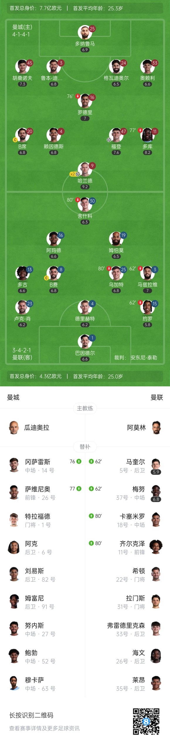 结束连败!曼城3-0曼联 哈兰德双响+失空门多库2助多纳鲁马神扑